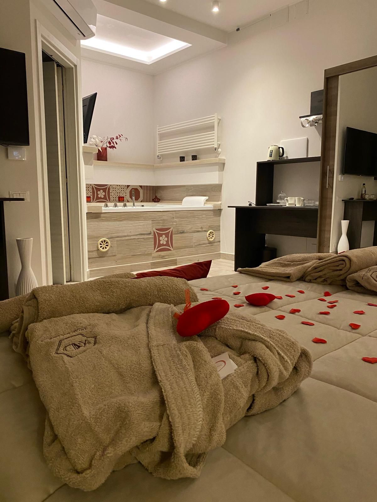 Una suite con idromassaggio privata a Bernalda in una camera calda e romantica dotata di ogni comfort.